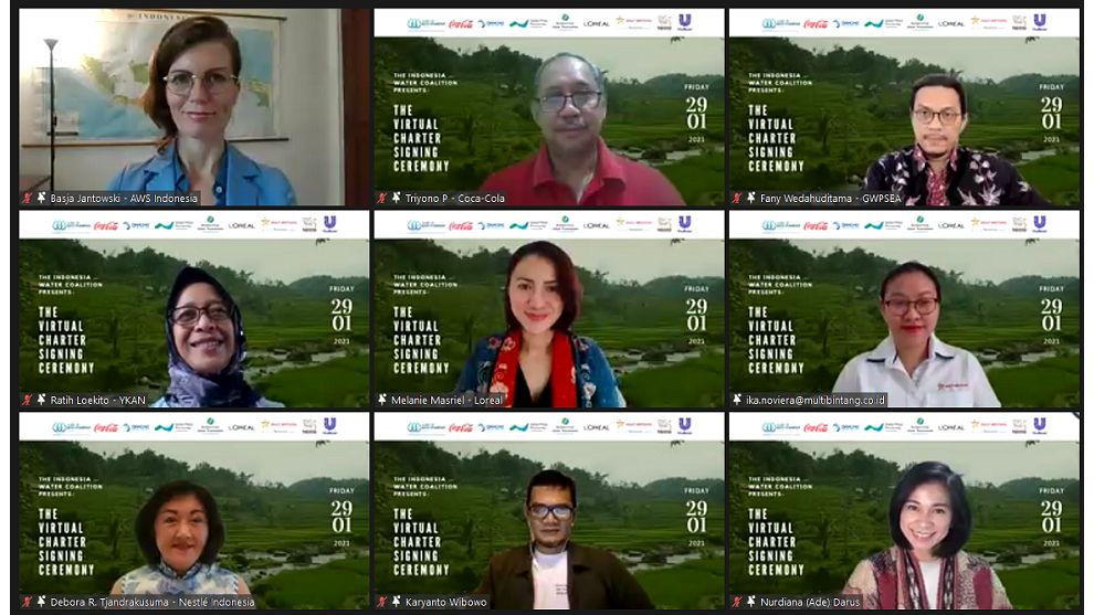 Peresmian secara virtual dilakukan dengan penandatanganan kesepakatan bersama para mitra, yang terdiri atas Yayasan Konservasi Alam Nusantara, Yayasan Aliansi Wali Sumber Daya Air Indonesia, PT Coca-Cola Indonesia, Global Water Partnership Southeast Asia, PT L’Oréal Indonesia, PT Multi Bintang Indonesia, PT Nestlé Indonesia, PT Tirta Investama (Danone Indonesia), dan PT Unilever Indonesia, Tbk. Koalisi Air Indonesia mendorong aksi kolektif yang sejalan dengan tata kelola air wilayah setempat, termasuk penerapan standar keberlanjutan (Standar Internasional Alliance for Water Stewardship) dan penerapan praktik terbaik yang mendukung pengelolaan sumber daya air yang berkelanjutan.