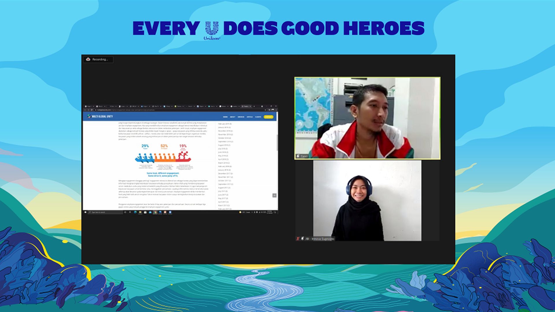 JAKARTA, 16 NOVEMBER 2021 - Pada hari ini, Unilever Indonesia kembali menggelar program mentoring ‘Every U Does Good Heroes’ serial The Journey. Menghadirkan Bijaksana Junerosano, pendiri Waste4Change yang telah lama berkecimpung dalam berbagai gerakan pelestarian lingkungan di Indonesia, berbagi ilmu serta pengalaman kepada 100 peserta terpilih mengenai ‘People Engagement’. Setelah beberapa sesi sebelumnya telah banyak menekankan pentingnya mindset; resilience; strategic thinking; hingga brand purpose, sesi mentoring kali ini berfokus pada strategi mewujudkan upaya kolektif dalam menciptakan solusi akan suatu masalah, khususnya dalam mewujudkan Indonesia yang lebih hijau dan lestari.