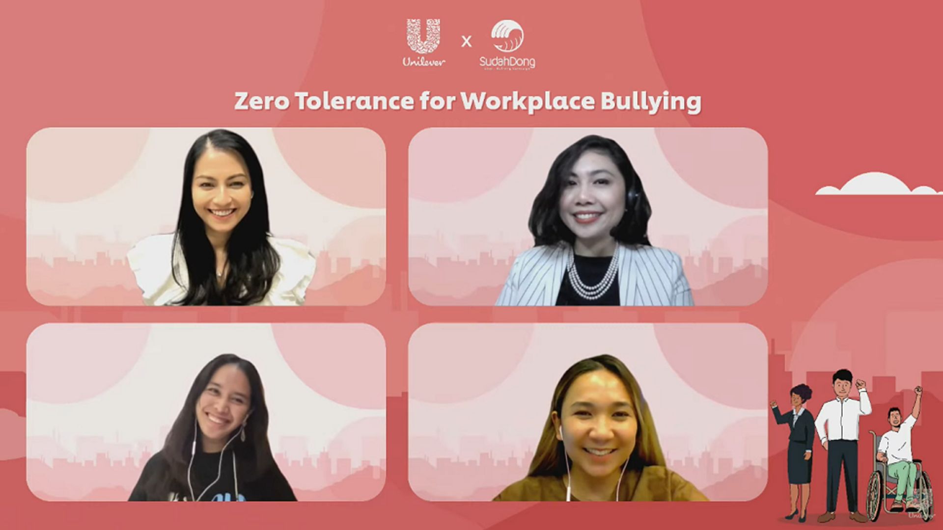 “Hal tersebut sejalan dengan strategi global ‘The Unilever Compass’, khususnya pada pilar berkontribusi pada masyarakat yang adil dan inklusif. Sebagai perusahaan denganzero tolerance terhadap salah satu bentuk intoleransi di masyarakat, yaitu aksi workplace bullying, kami ingin dapat saling berbagi mengenai langkah-langkah untuk mencegah dan menindaklanjutinya. Harapannya, bersama-sama kita dapat terus berupaya menciptakan lingkungan kerja yang lebih sehat,” sambung Kristy.